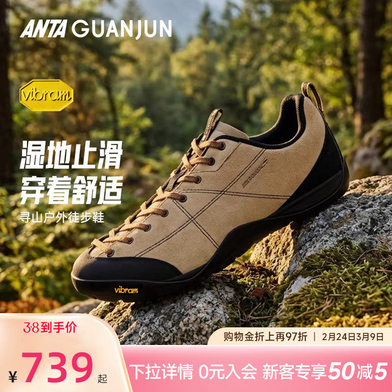 安踏冠军寻山丨休闲运动平板鞋真皮男女耐磨防滑徒步鞋112618805A