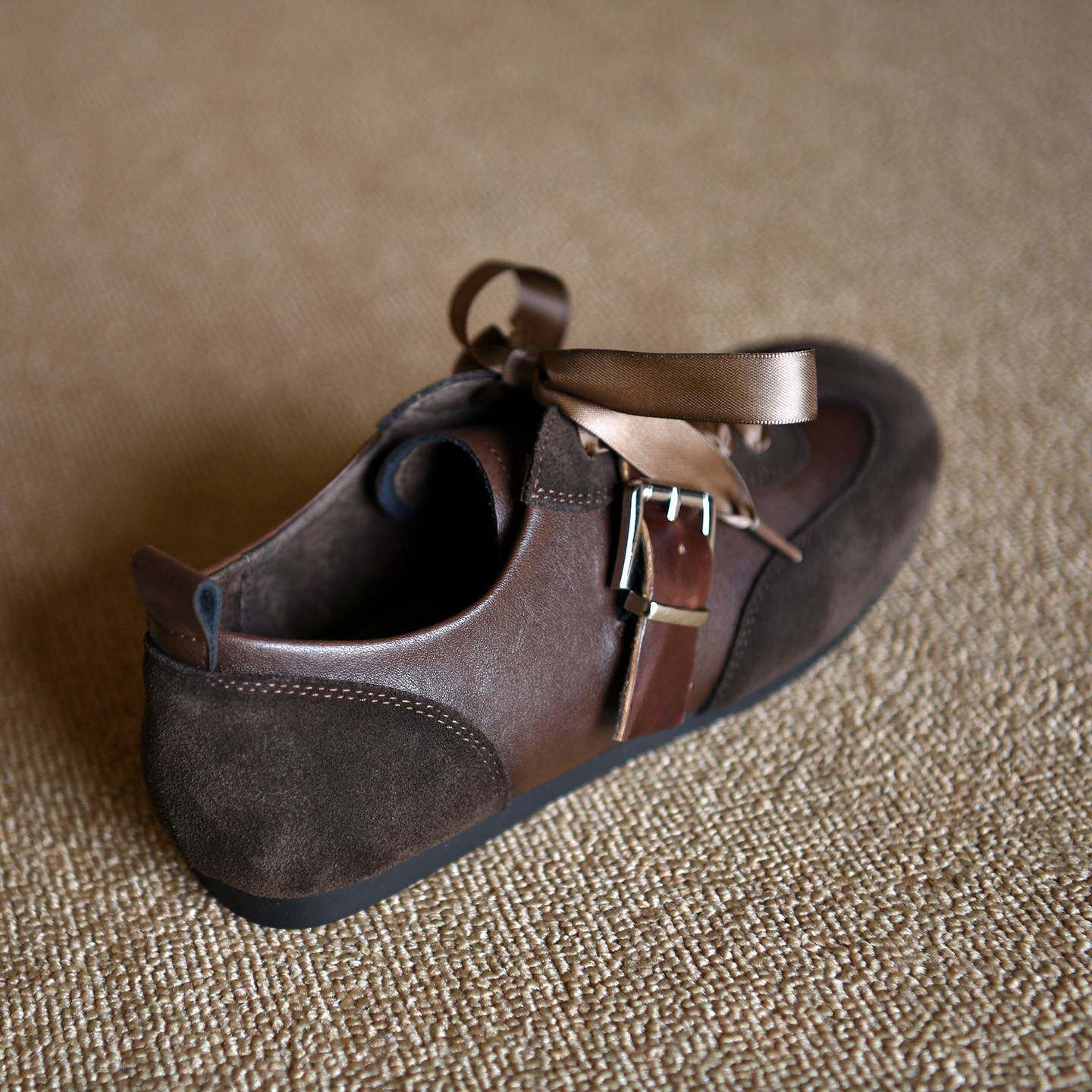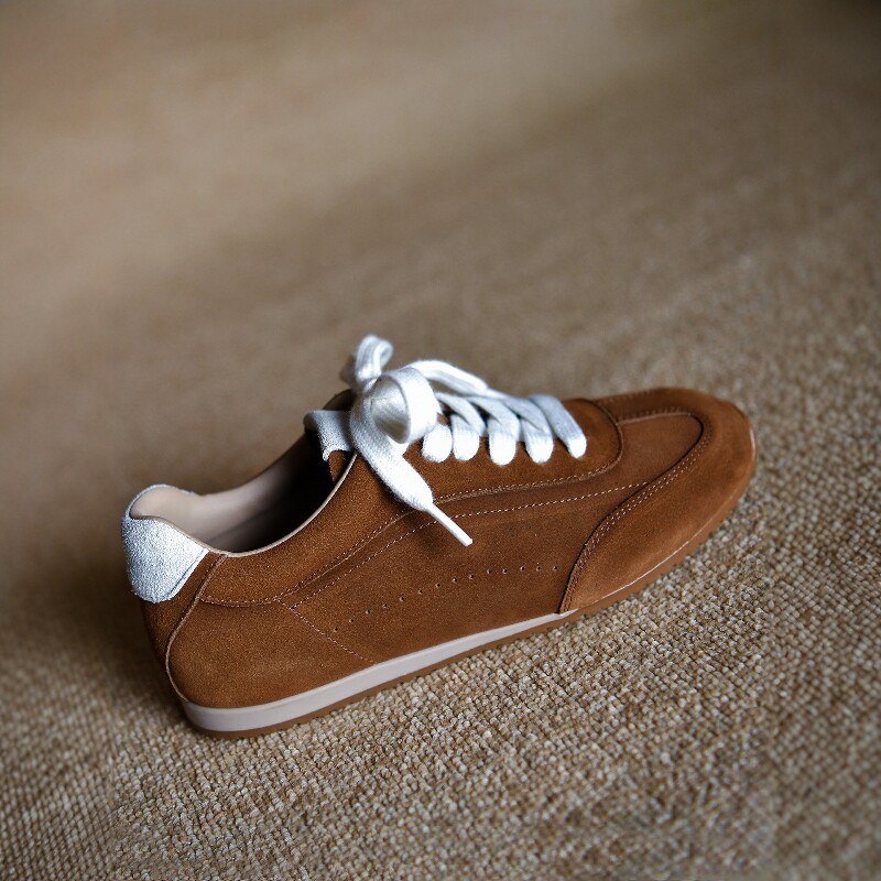 日本JGYPDM 2026磨砂牛皮棕色休闲运动鞋女德训鞋真皮平板鞋女鞋