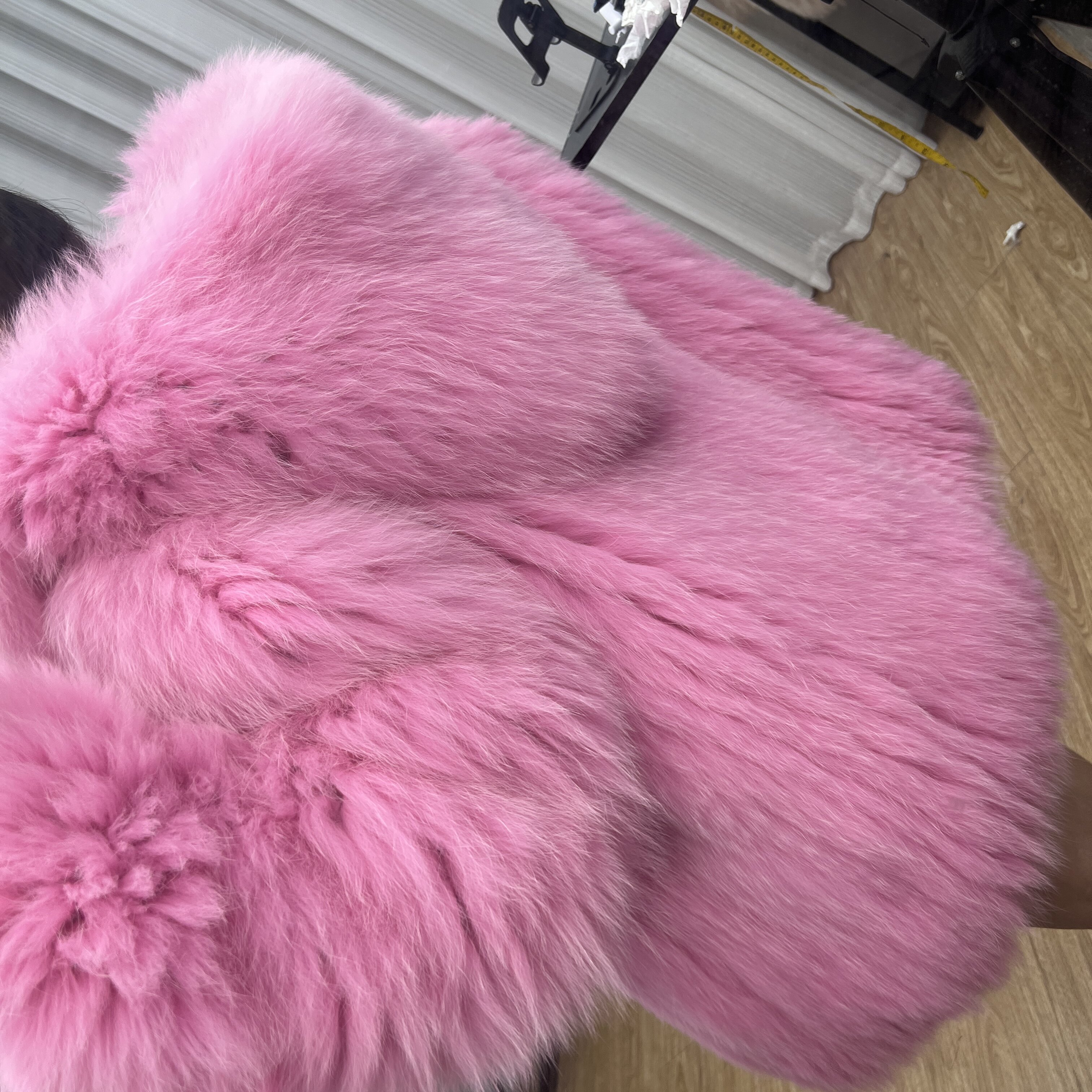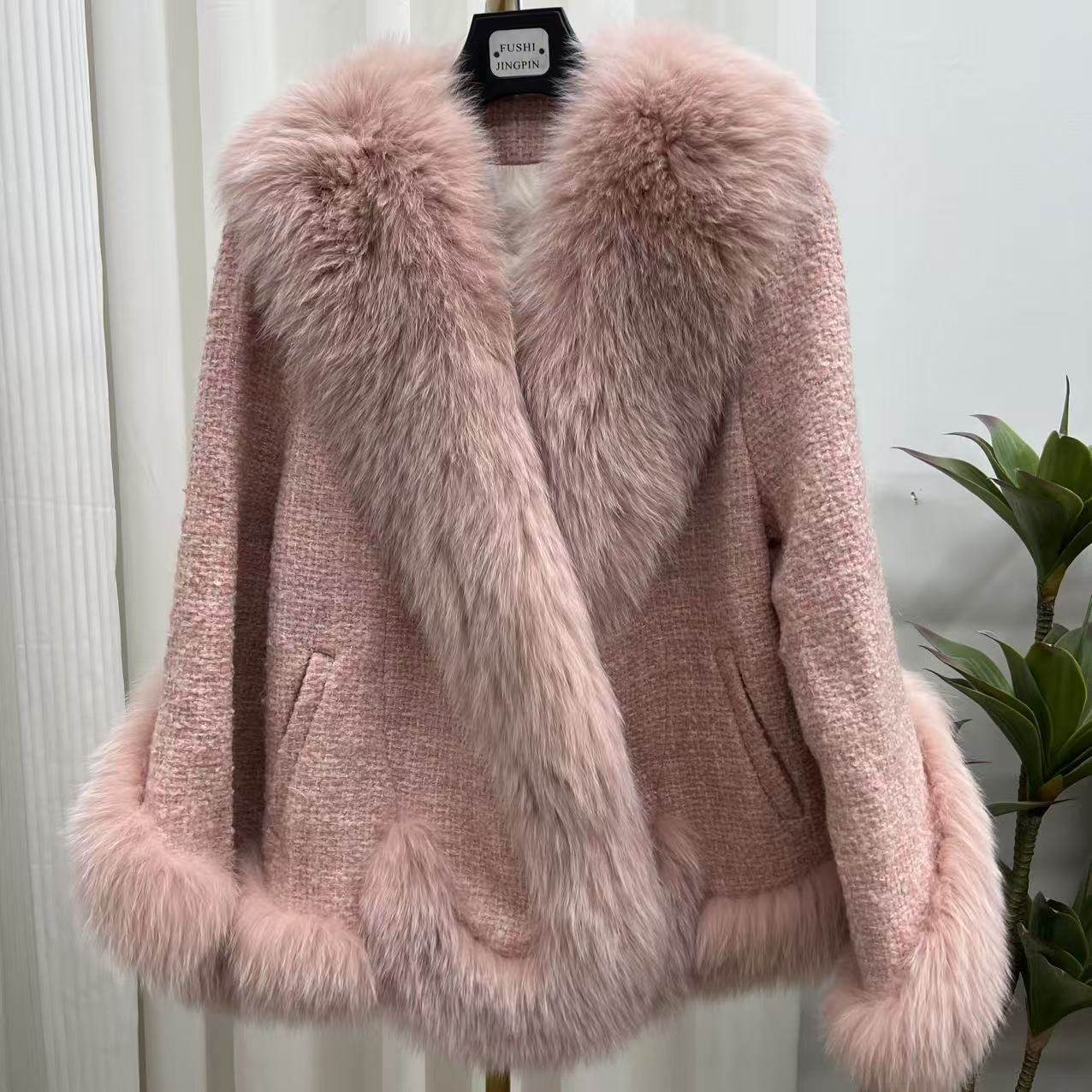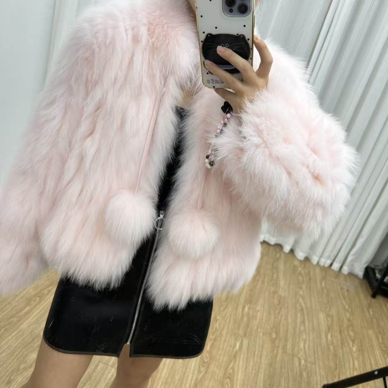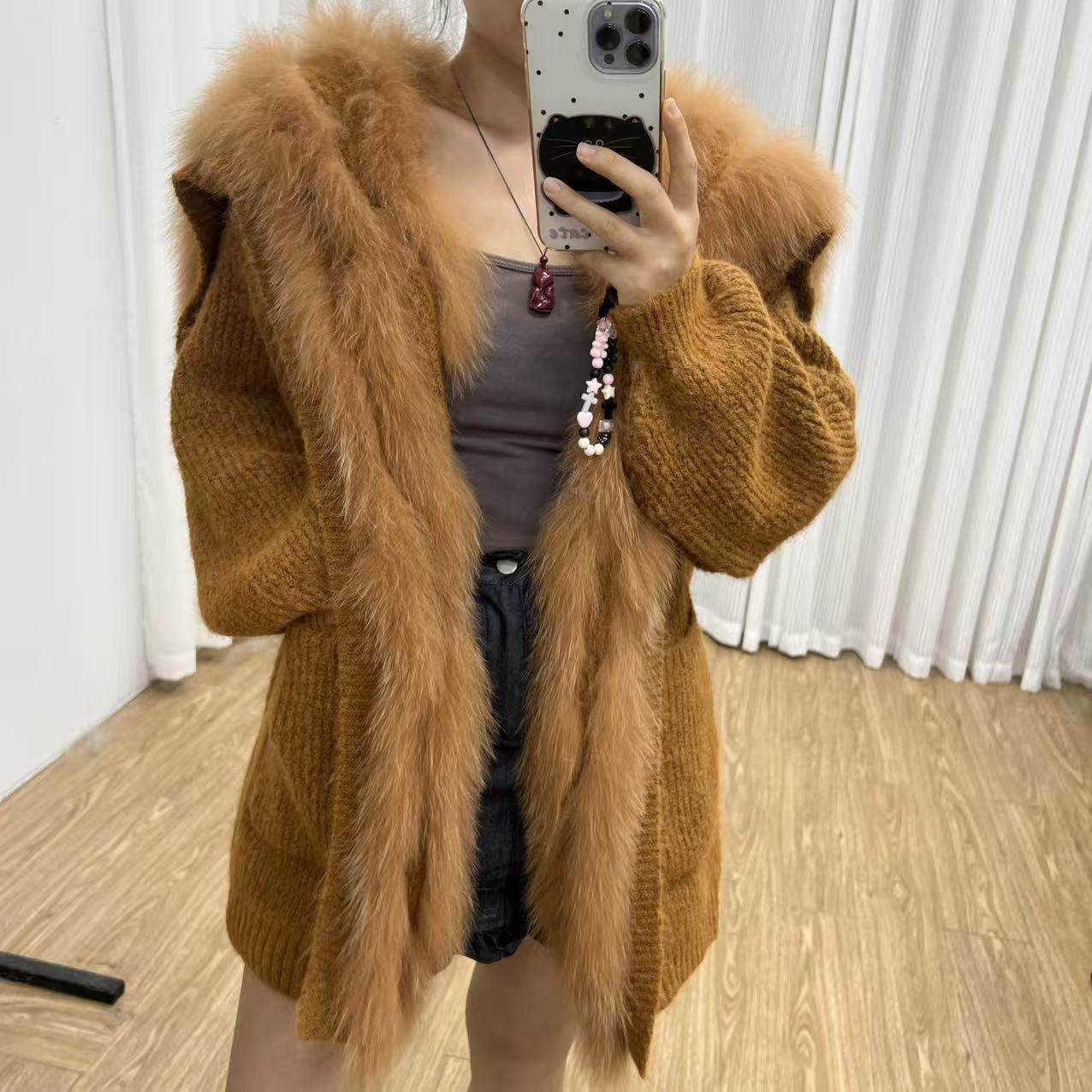 2025反季海宁女士时尚狐狸毛编织连帽宽松网红 大熊保暖皮草外套