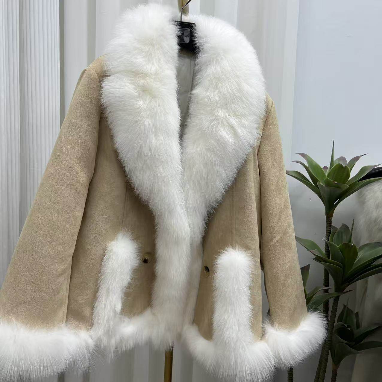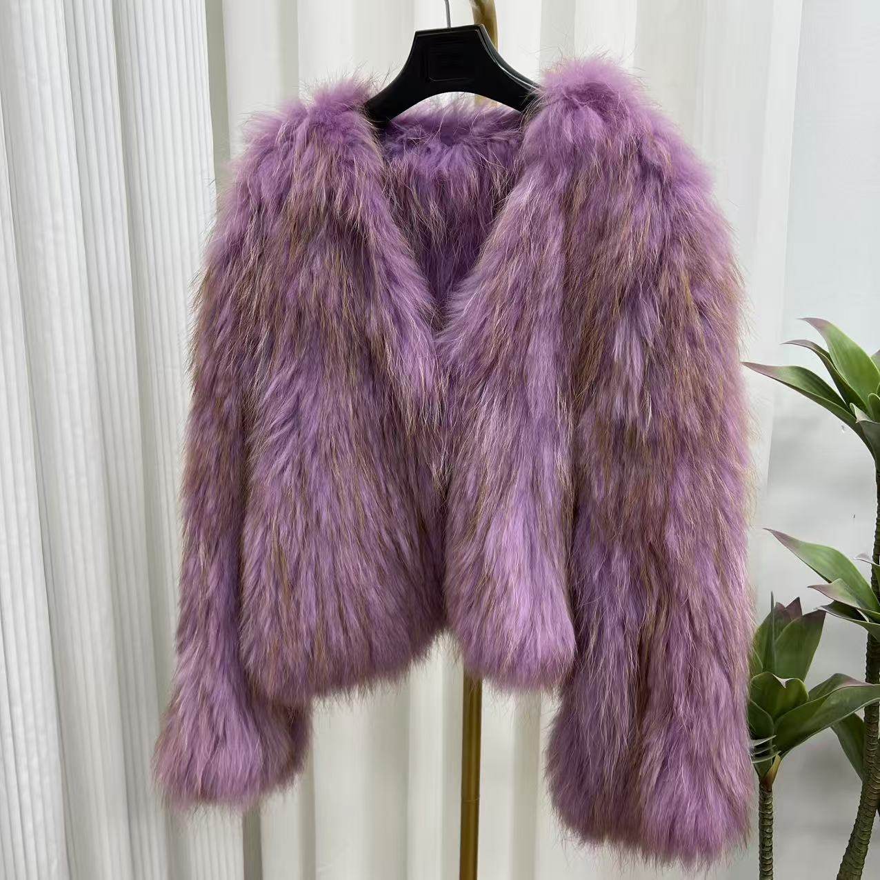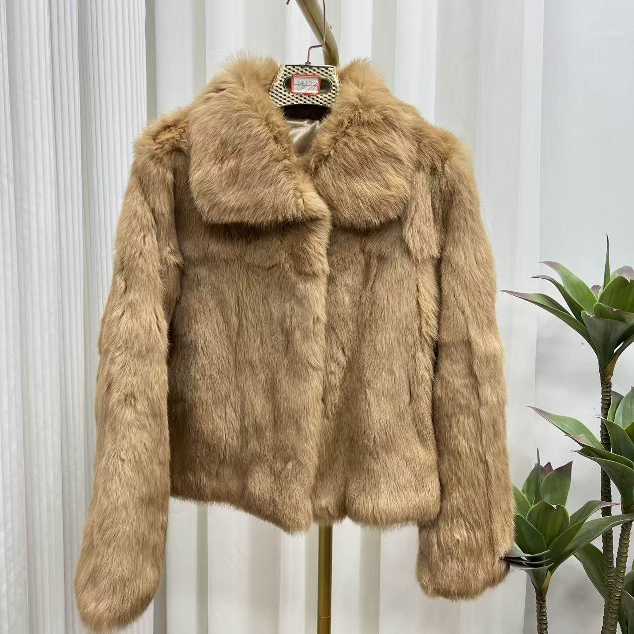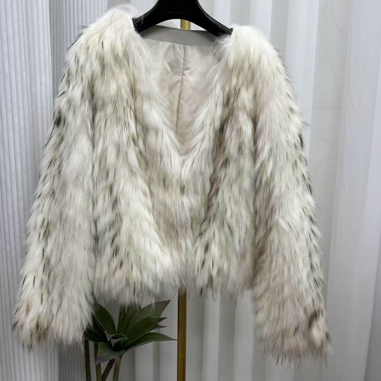 2025反季海宁女士时尚狐狸毛编织连帽宽松网红 大熊保暖皮草外套
