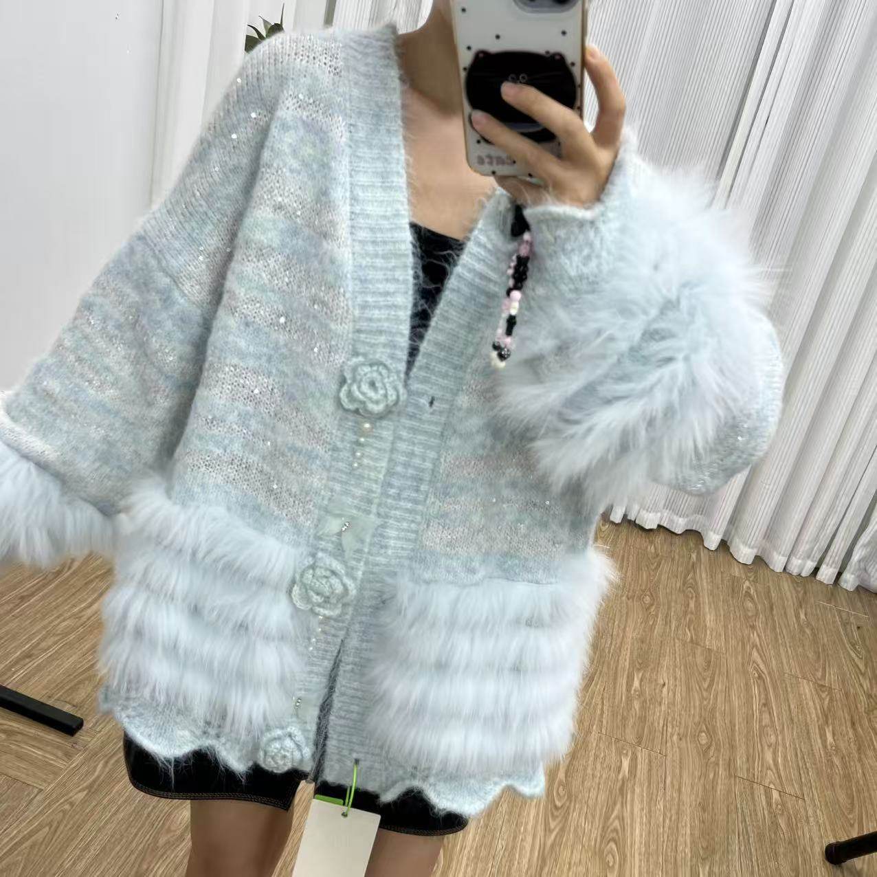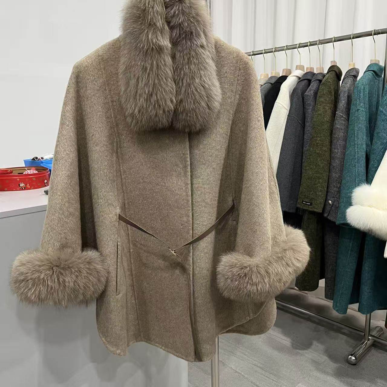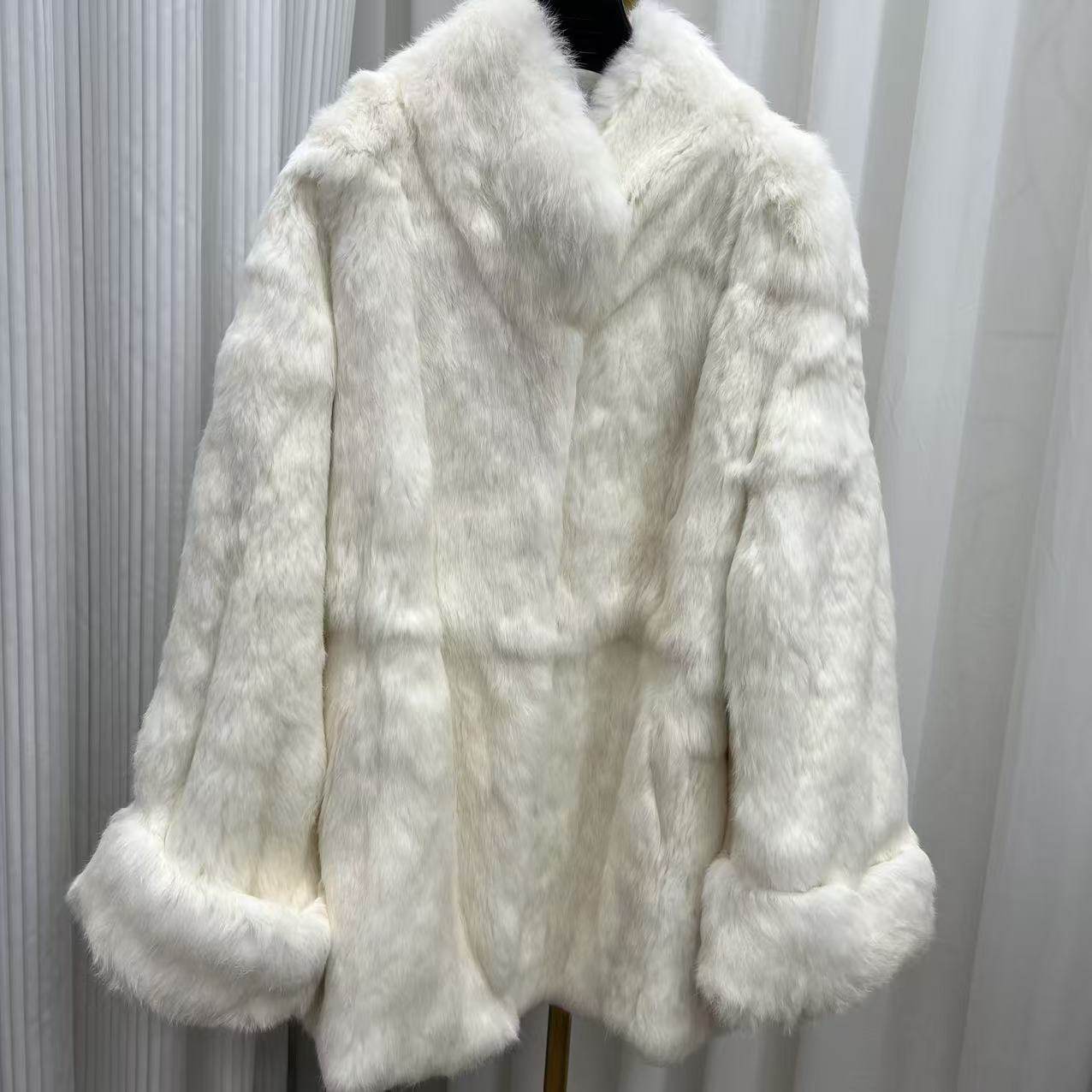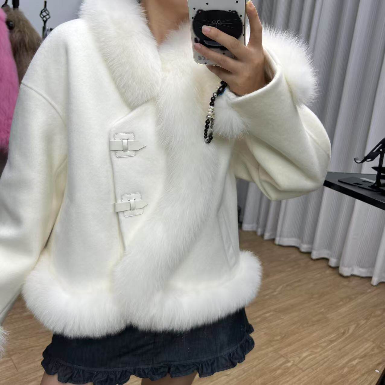 2025反季海宁女士时尚狐狸毛编织连帽宽松网红 大熊保暖皮草外套