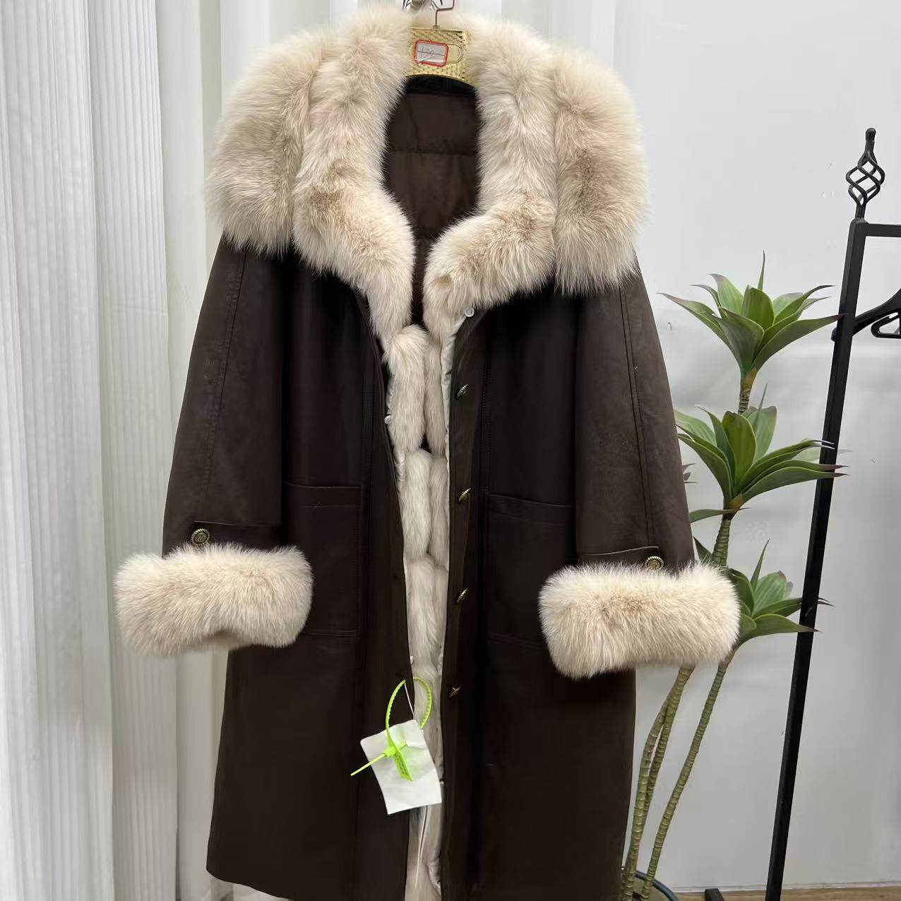 海宁派克服女可拆卸加厚狐狸毛内胆皮毛一体长款羽绒服仿皮草外套