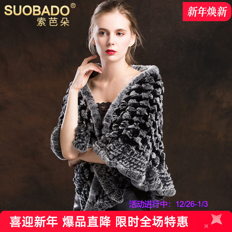 2025新款海宁女秋冬獭兔毛披肩印花保暖编织兔毛坎肩皮草大围巾