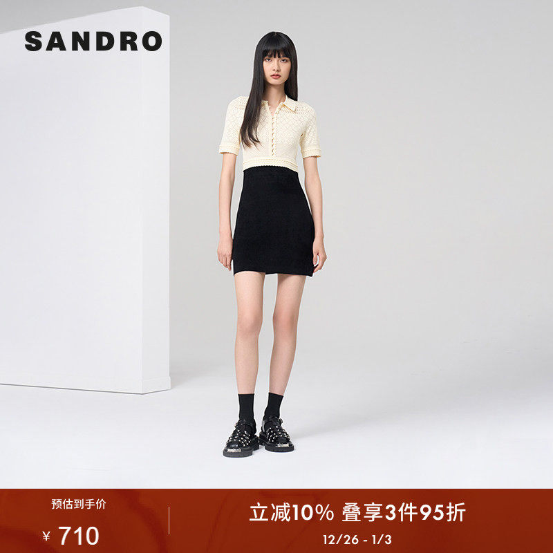 SANDRO Outlets秋冬女装法式时尚镂空点缀气质拼接假两件连衣裙