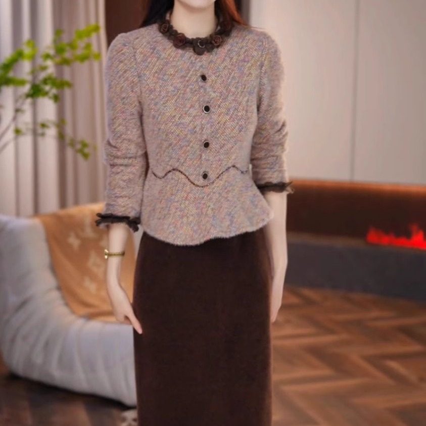 YINER音儿专选2025秋季新款法式羊毛混纺针织拼接假两件连衣裙