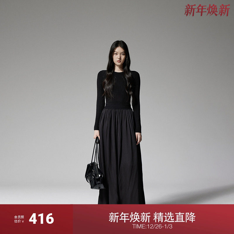 OCHIRLY欧时力拼接假两件连衣裙针织长款A字气质2025春新款