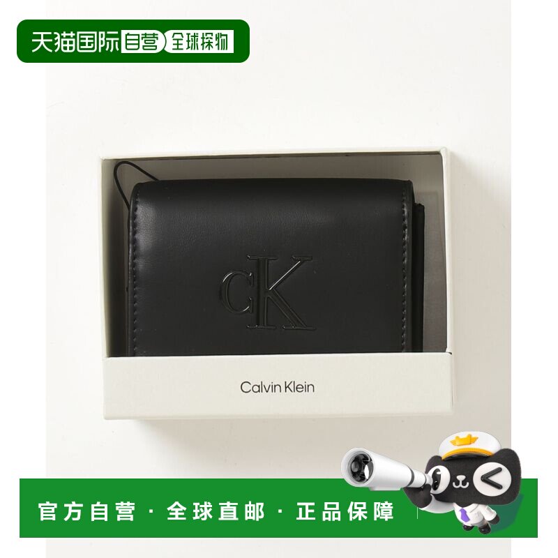 1h可退 日本直邮Calvin Klein 男装 真牛皮 三折钱包 半压纹CK标