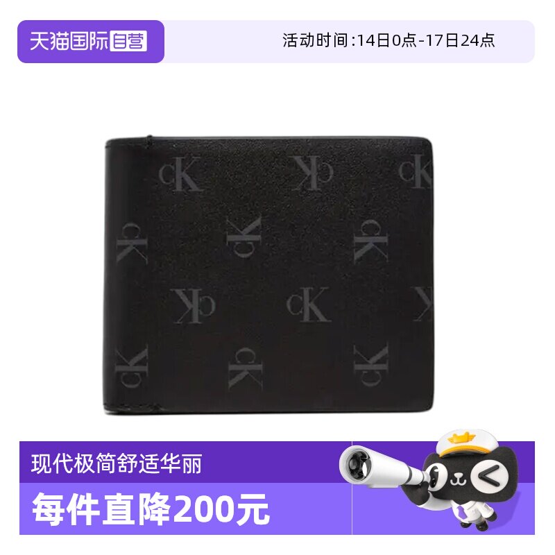 ck钱包男短款钱夹Calvin Klein/凯文克莱皮包纯色简约美国直邮