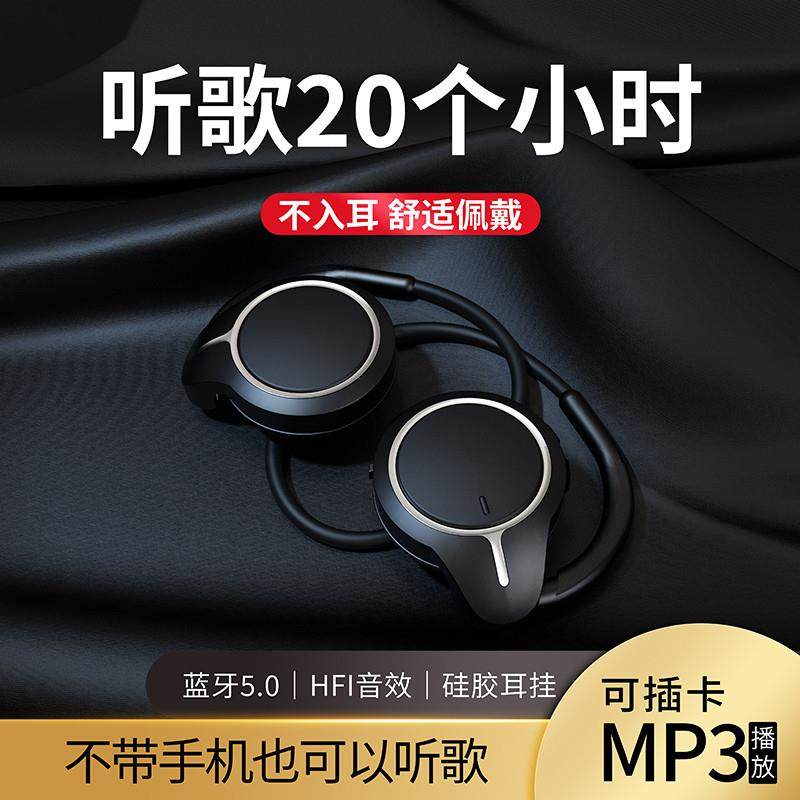 运动蓝牙耳机无线跑步健身降噪不入耳自带内存mp3头戴式双挂耳骨