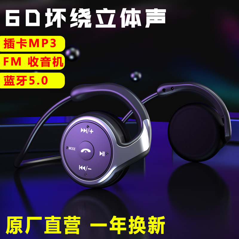 适用可插卡无线蓝牙耳机重低音运动双耳MP3收音挂耳式头戴式跑步