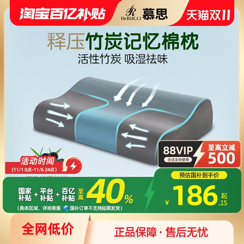 慕思竹炭记忆枕无压枕护颈椎保健枕眠整头枕头单人助护颈睡眠专用