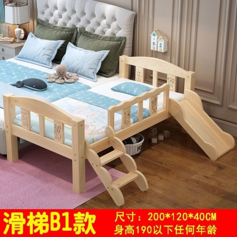 加宽儿童床带拼接婴儿床滑梯女孩护栏宝宝实木床男大床滑围栏小床