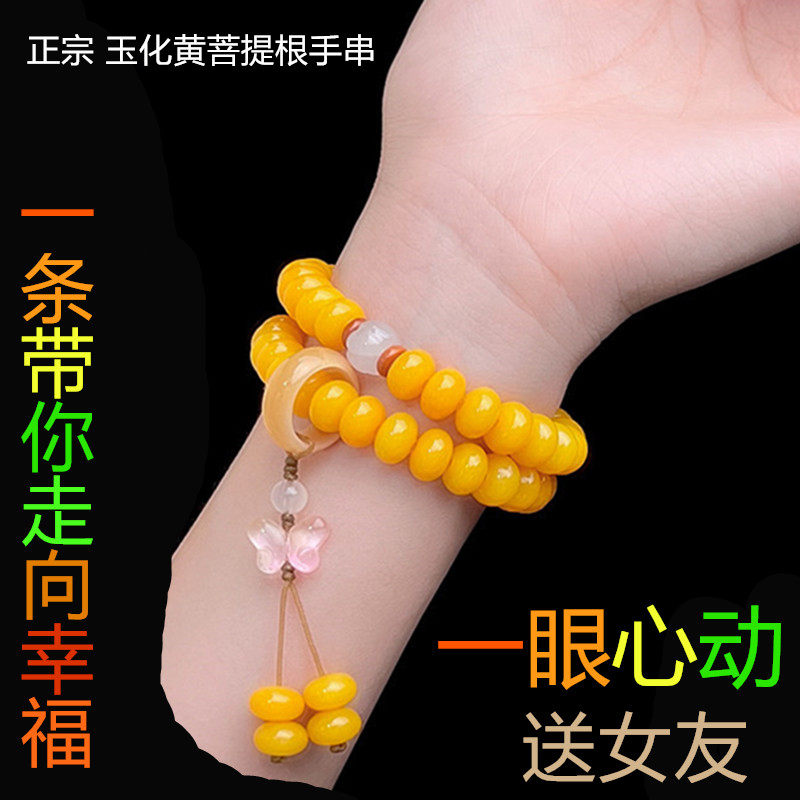 正品高档天然黄菩提根手串送女友送妻子生日礼物文玩手链招财运珠