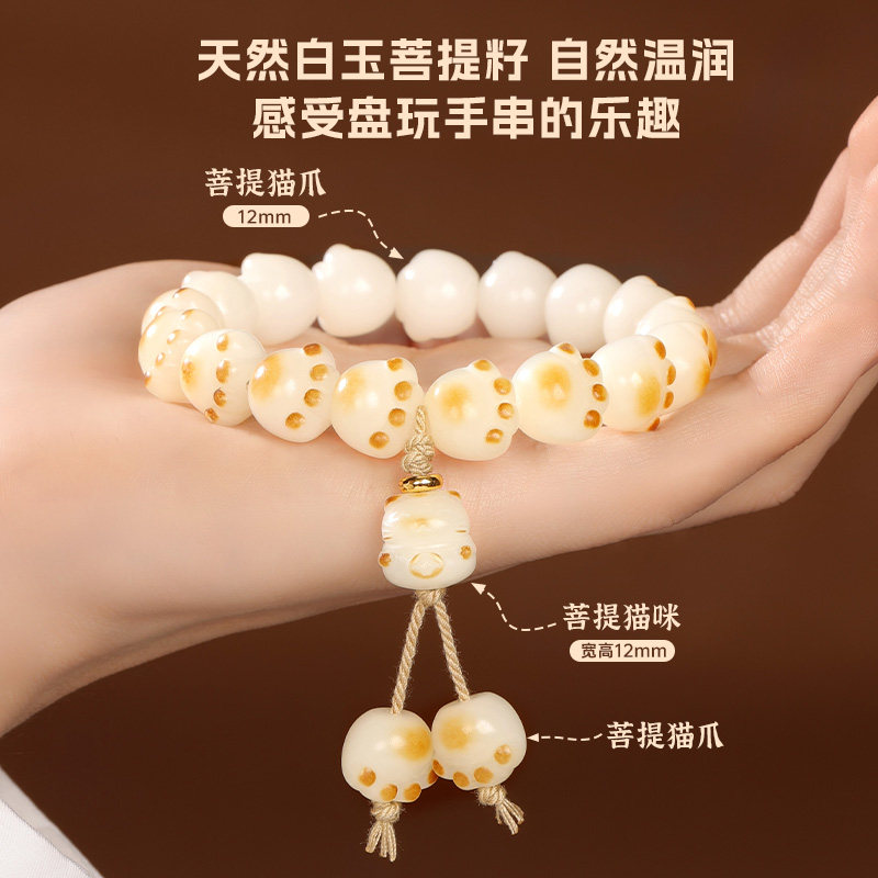 杭州文创 猫爪菩提根手串女炭烧白玉菩提子手链文玩佛珠手串灵隐
