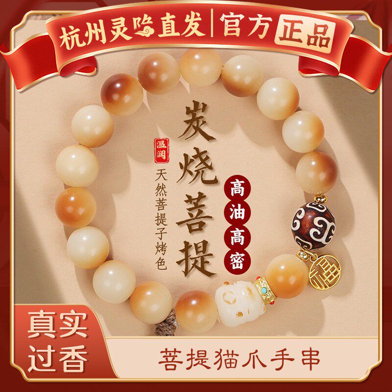【杭州灵隐】炭烧猫爪菩提根手串男女白玉菩提子抓钱聚财转运佛珠