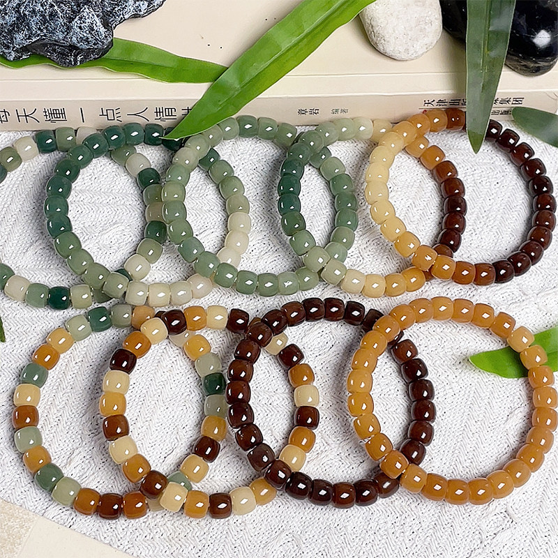 DIY菩提散珠配饰白玉菩提根手串敦煌风化奶黄圆珠苹果桶珠算盘珠