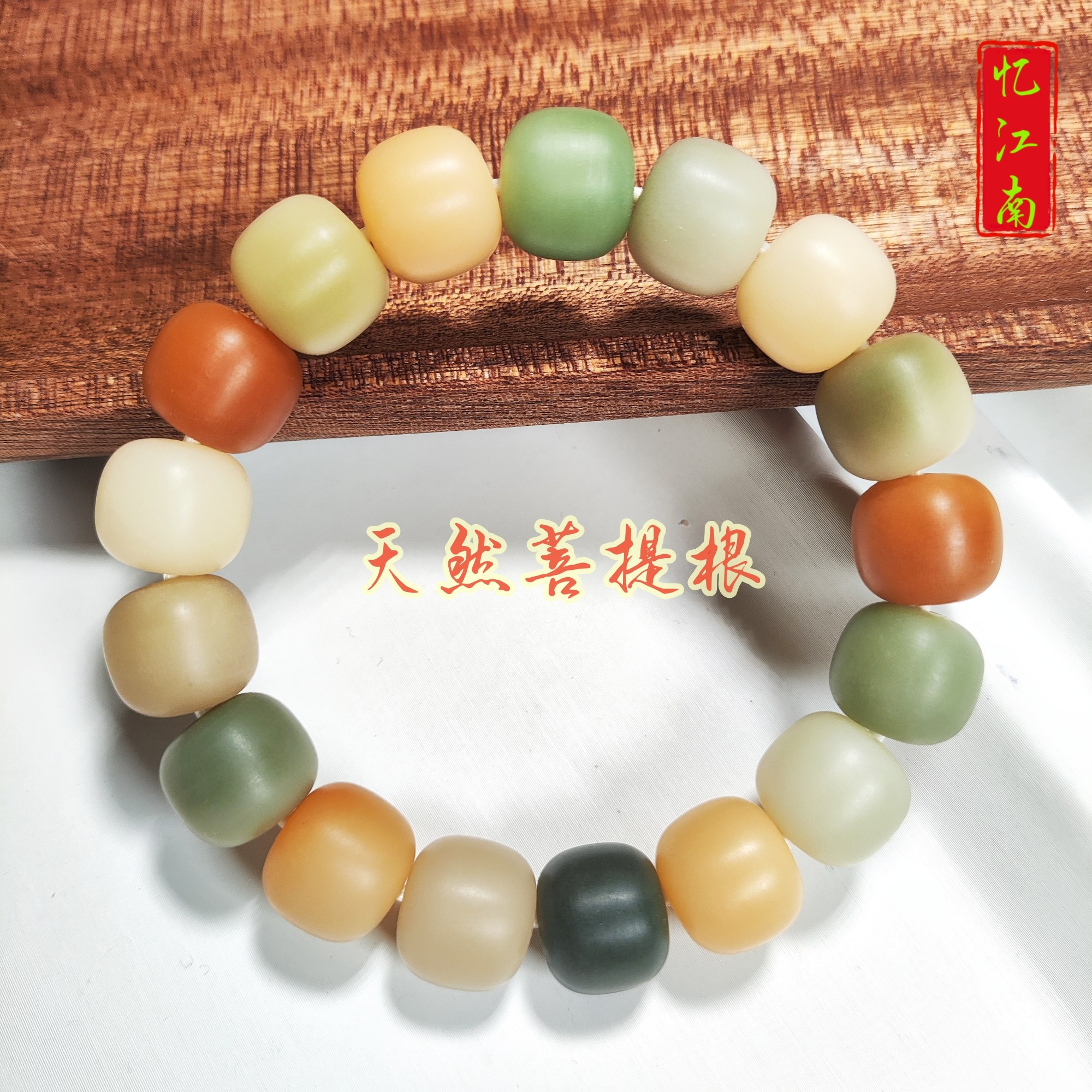 渐变白玉菩提根手串女绕指柔文玩菩提子佛珠原籽绿阴皮男盘玩手链