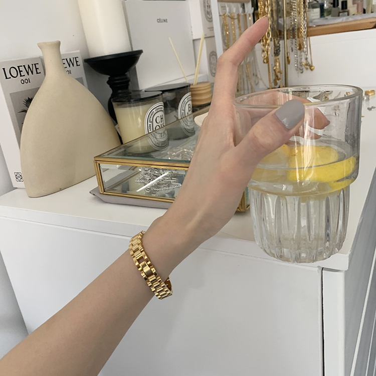 GRGR 18K金色古巴链手链男女嘻哈情侣款同款欧美流行 cuban link