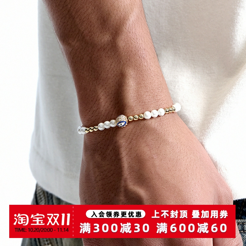 原创欧美潮牌情侣款钛钢手工编织金色珠子男士手链简约高级感手环
