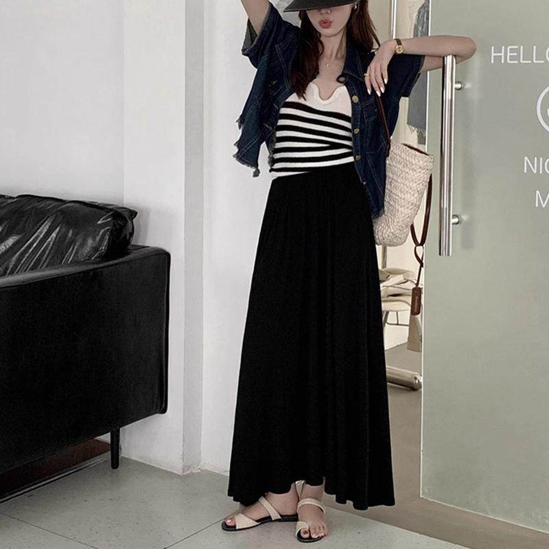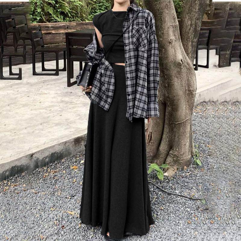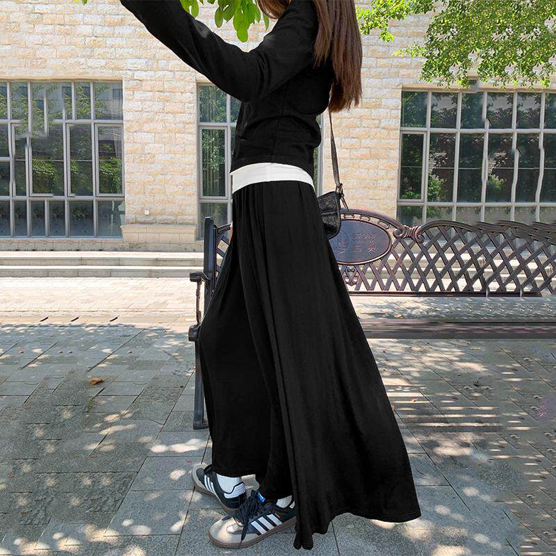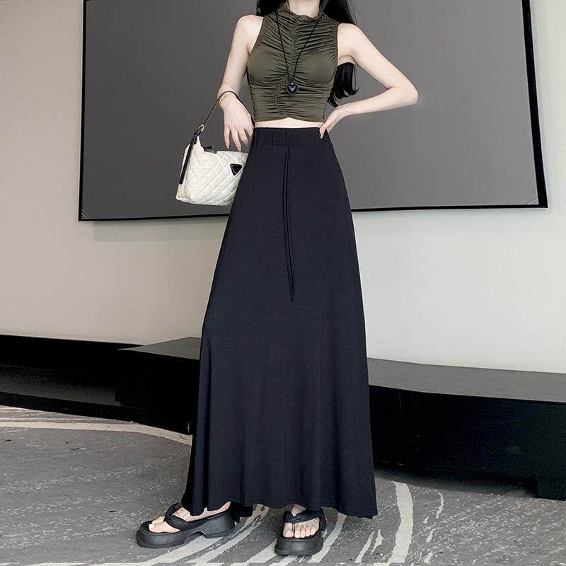 黑色莫代尔半身长裙女慵懒垂感夏高腰显瘦遮胯宽松a字半身裙大摆