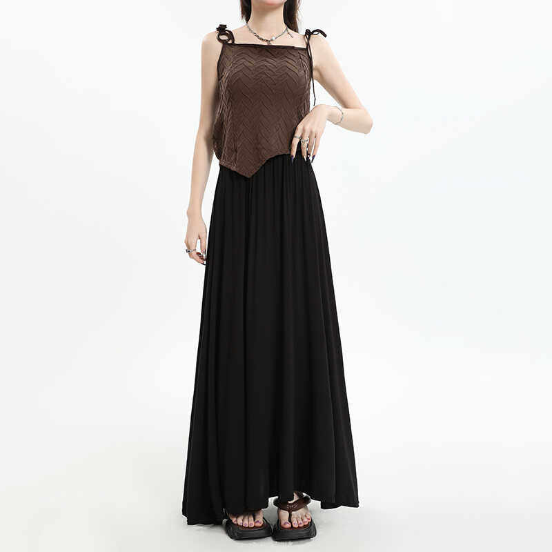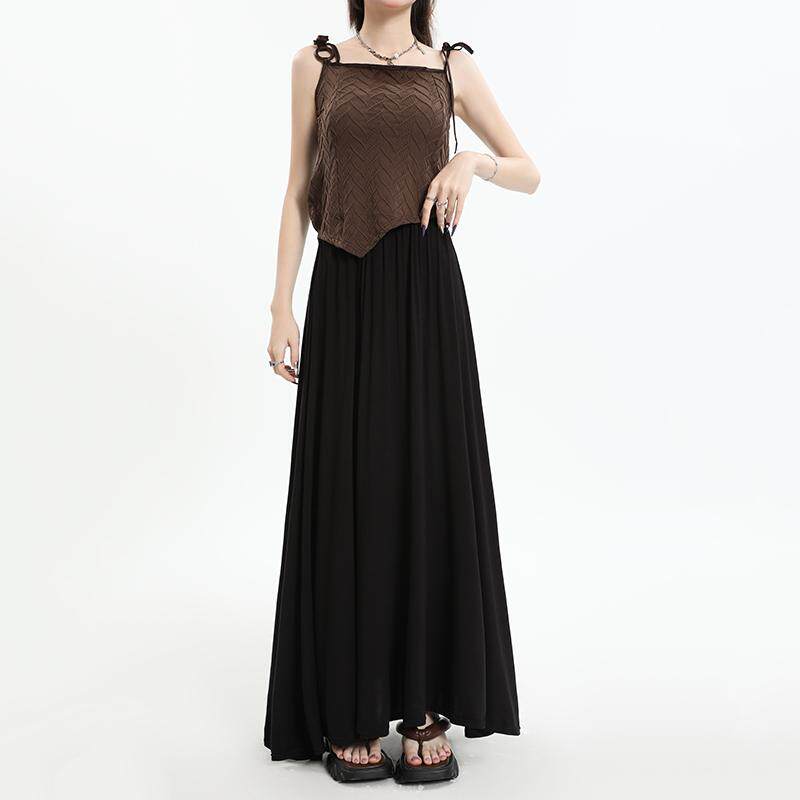 太平鸟莫代尔无袖抹胸连衣裙2025夏新黑色吊带长裙品质A1FAF2181
