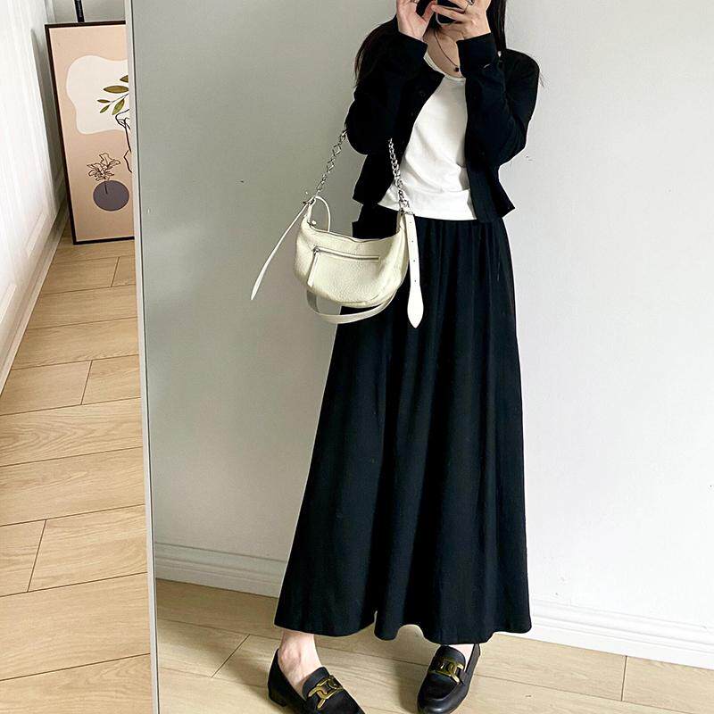 黑色莫代尔半身长裙女早秋韩系松紧腰系带高腰显瘦遮胯a字半身裙
