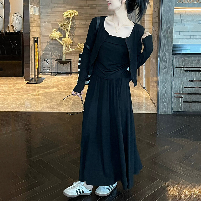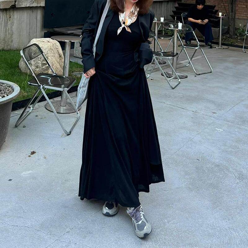 莫代尔连衣裙女2025秋季新款黑色大摆长裙长款修身显瘦内搭打底裙