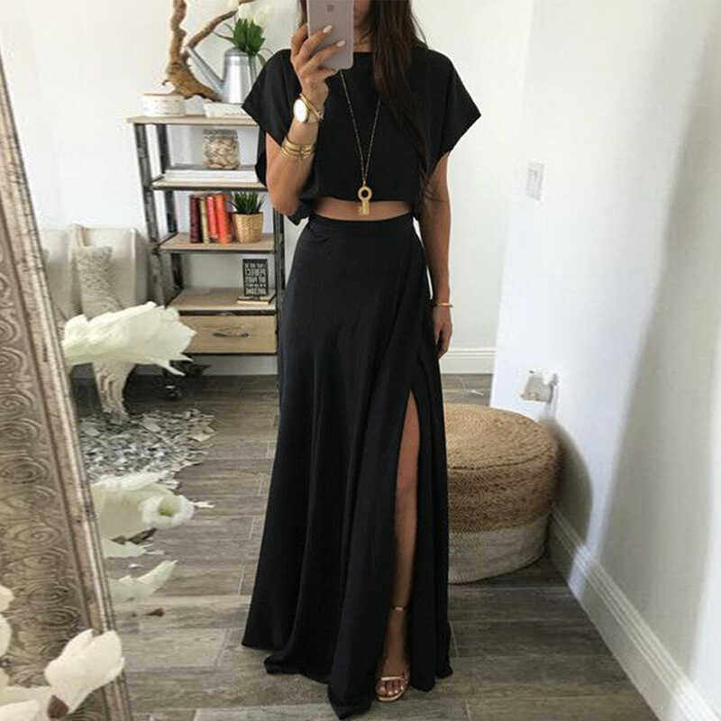 莫代尔黑色大码巨显瘦连衣裙女胖mm夏季开衫外套高开叉长裙两件套