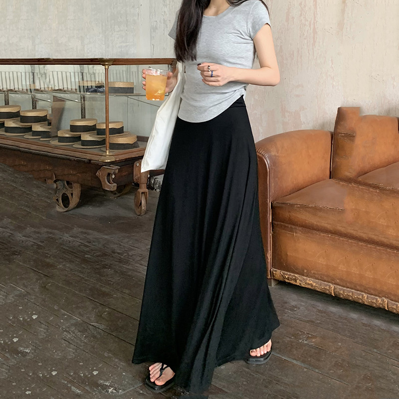 莫代尔黑色A字半身裙女夏季高腰宽松长裙显瘦百搭松紧腰高弹伞裙