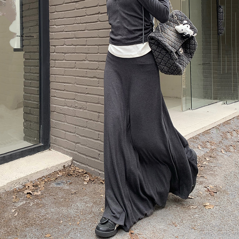 黑色莫代尔半身长裙到脚踝超长款2026新款韩版宽松a字大摆半身裙