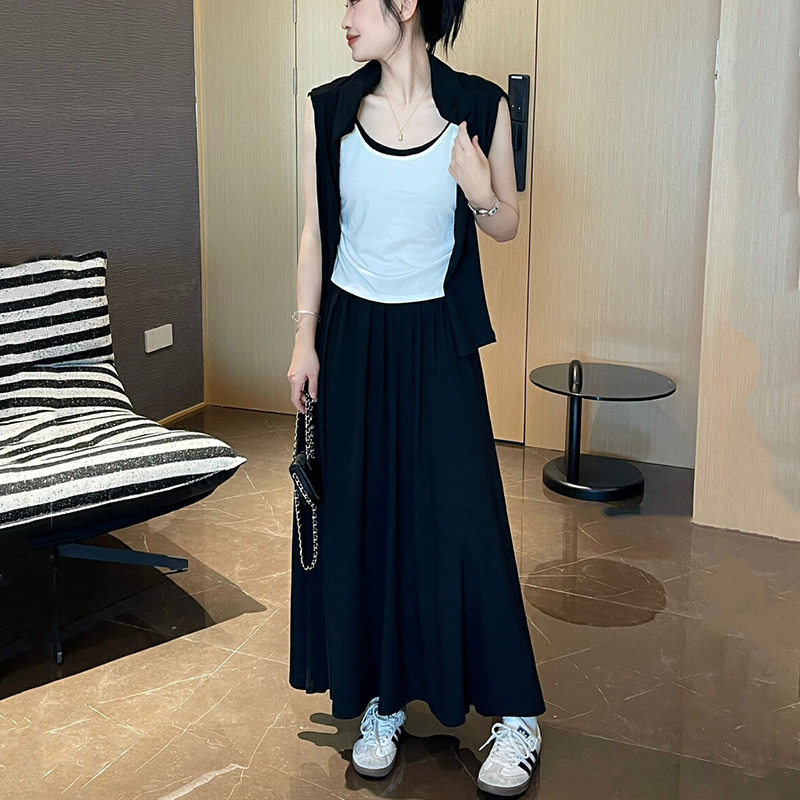 莫代尔长裙女装2025年夏吊带背心修身显瘦无袖裙子黑色a字连衣裙