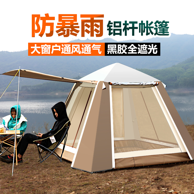 帐篷户外3-4人5-8人全自动家庭防暴雨野外露营野营双层加厚铝杆