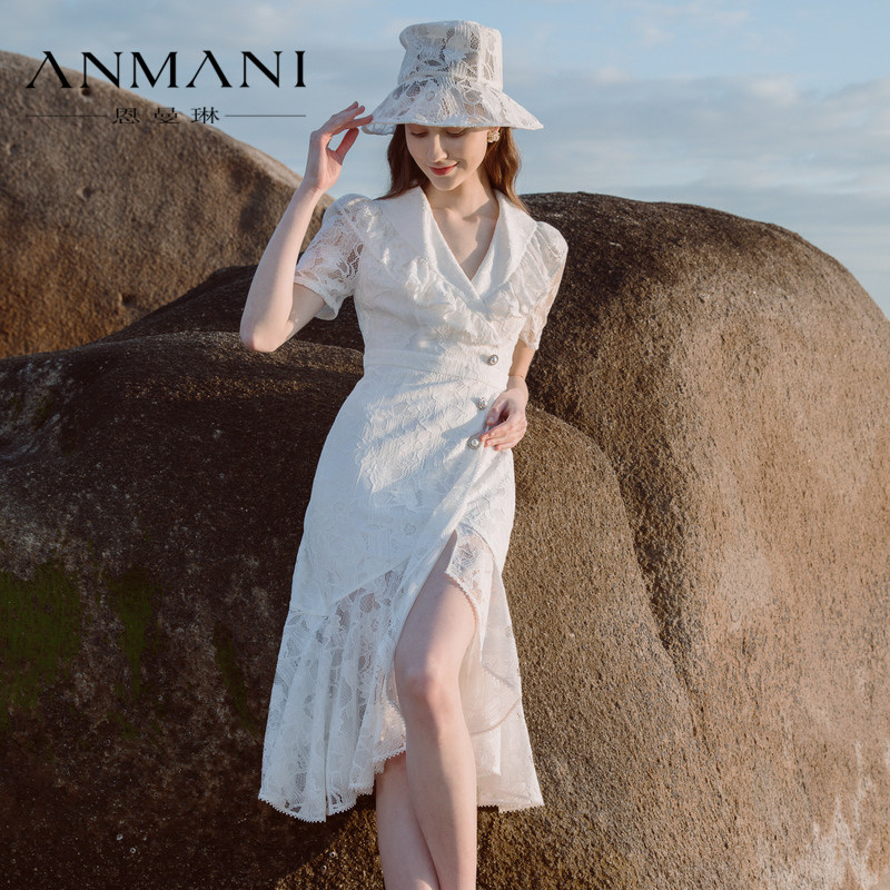 ANMANI恩曼琳23夏季新款法式优雅高腰重工蕾丝鱼尾连衣裙EANDBH07
