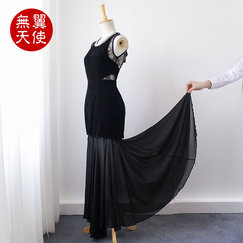 明星同款女装新款经典黑色性感V领蕾丝连衣裙高级感好看鱼尾长裙