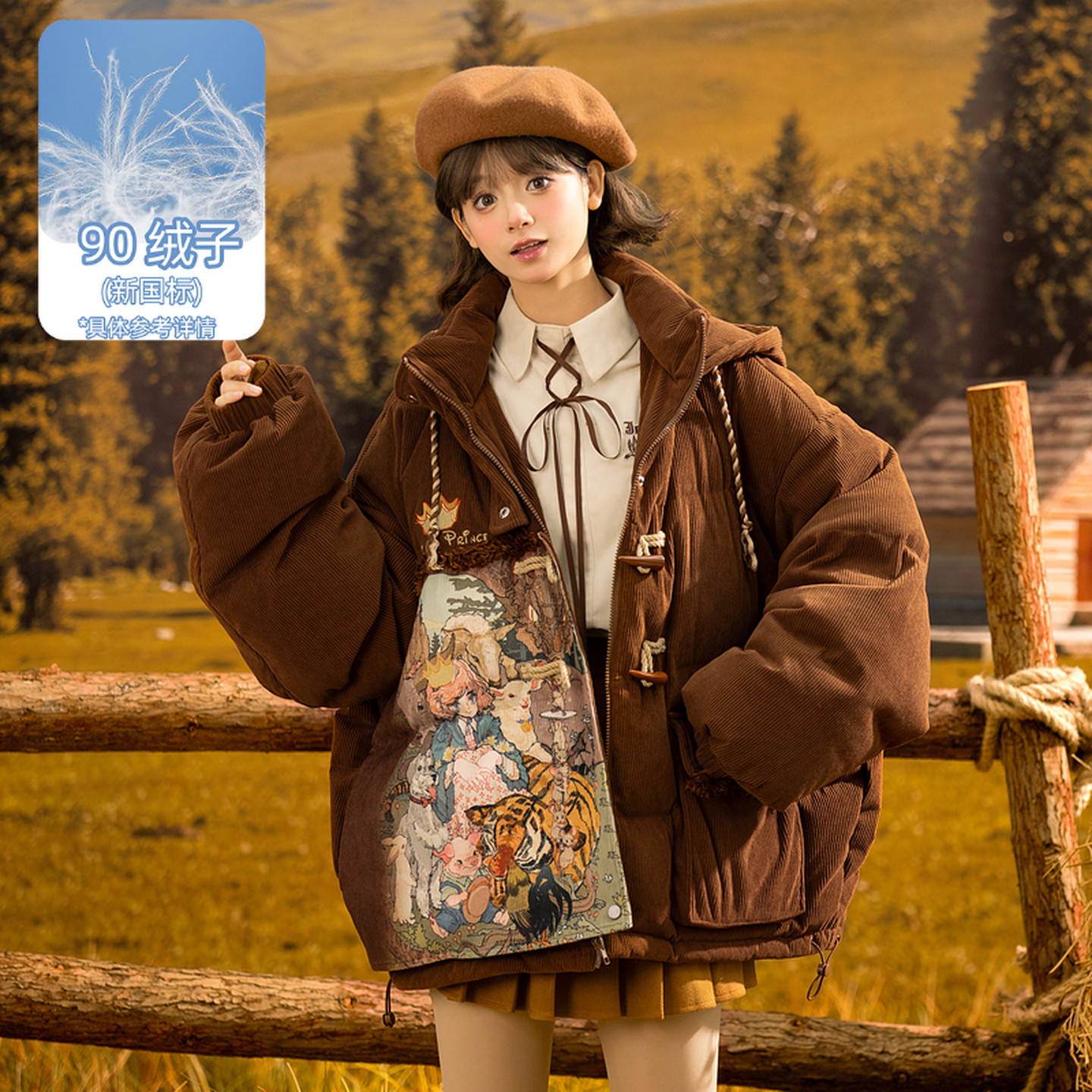 森女部落设计美拉德油画系列复古灯芯绒羽绒服女冬2026秋新款外套