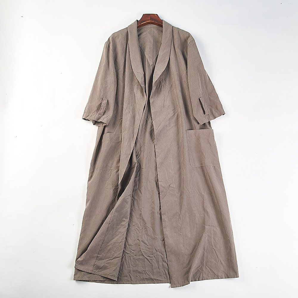 复古文艺超长款女式风衣外套夏秋季棉麻料外搭开衫防晒衣宽松森系