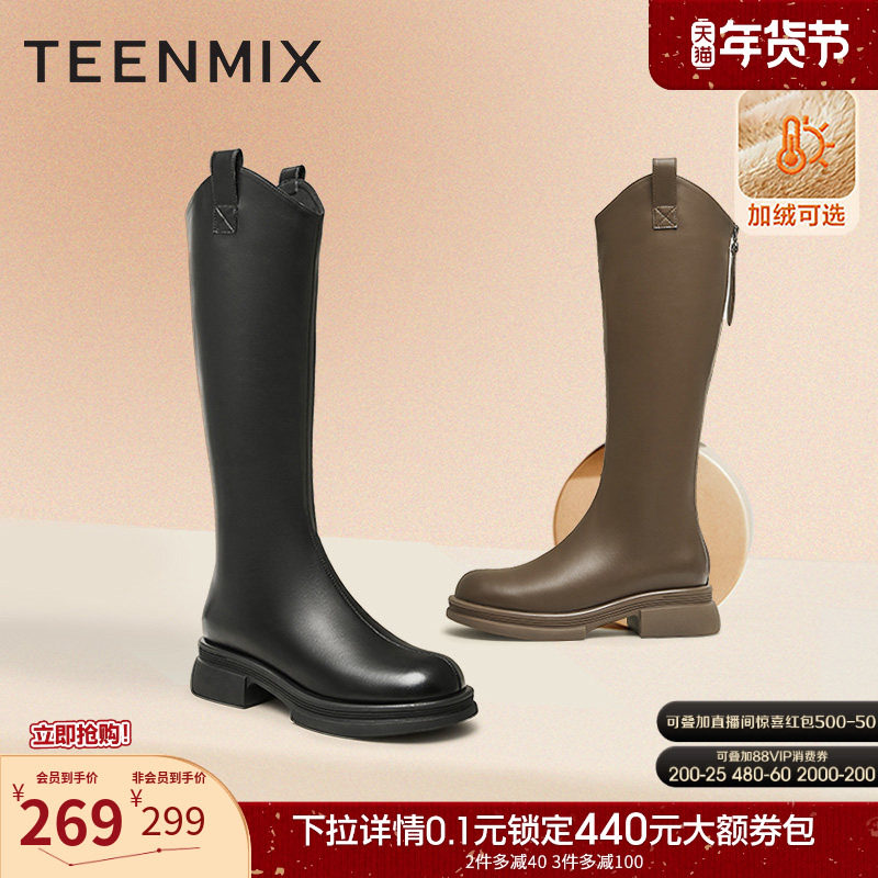 天美意厚底V口加绒骑士靴长靴女鞋子高筒时装靴冬季新款BH641DG5