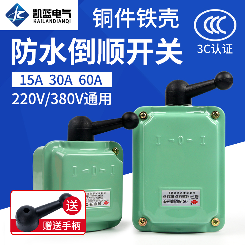 倒顺开关QS-15A 380v 220v 防水 三相电机和面机正反转开关