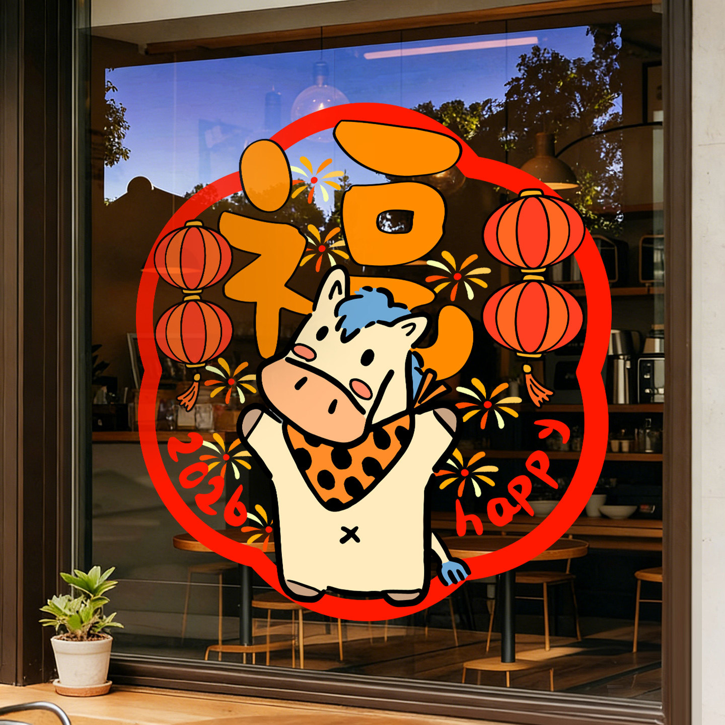 2026新年装饰马年门贴窗花静电玻璃贴纸春节窗贴场景氛围布置公司