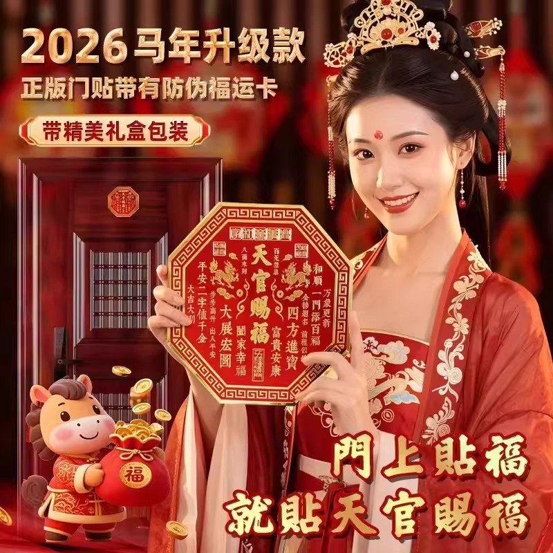 2026新款马年立体福字门贴纸新年卡通斗方装饰春节入户门过年布置