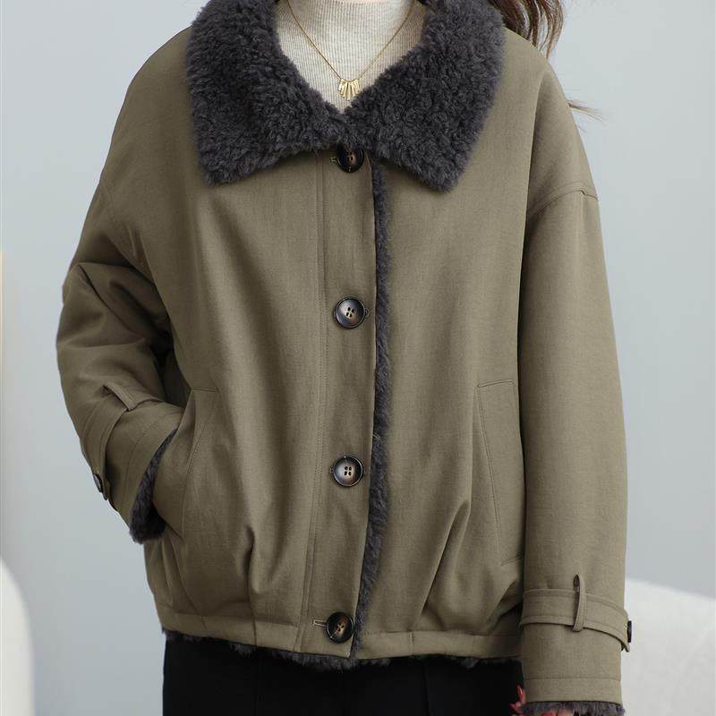 加绒加厚外套女2026秋冬新款宽松百搭羊羔毛皮毛一体棉服大衣潮