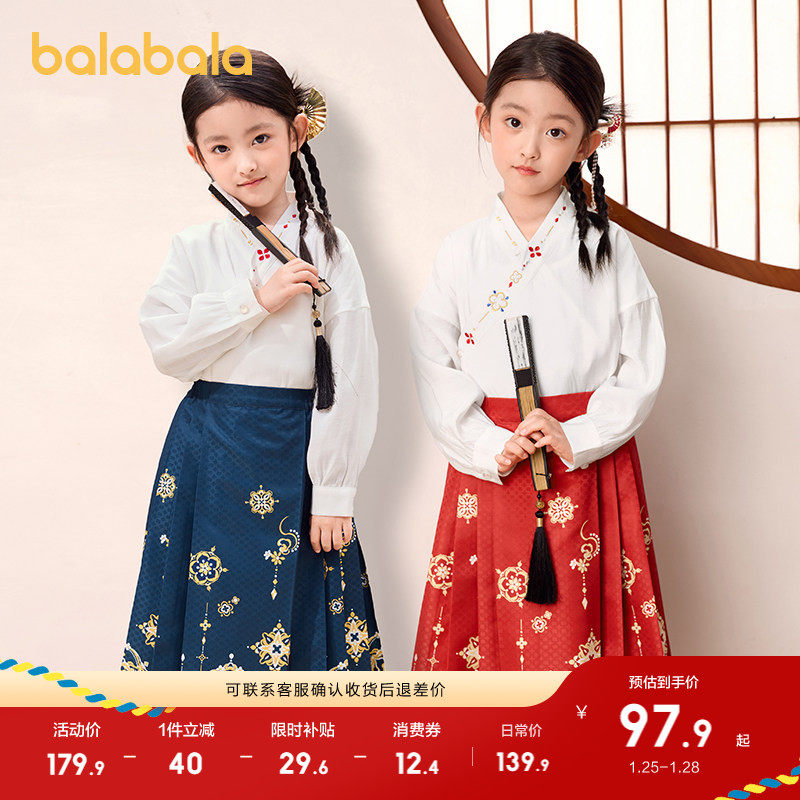 巴拉巴拉女童马面裙儿童汉服唐装2025国风套装两件套红色拜年服潮