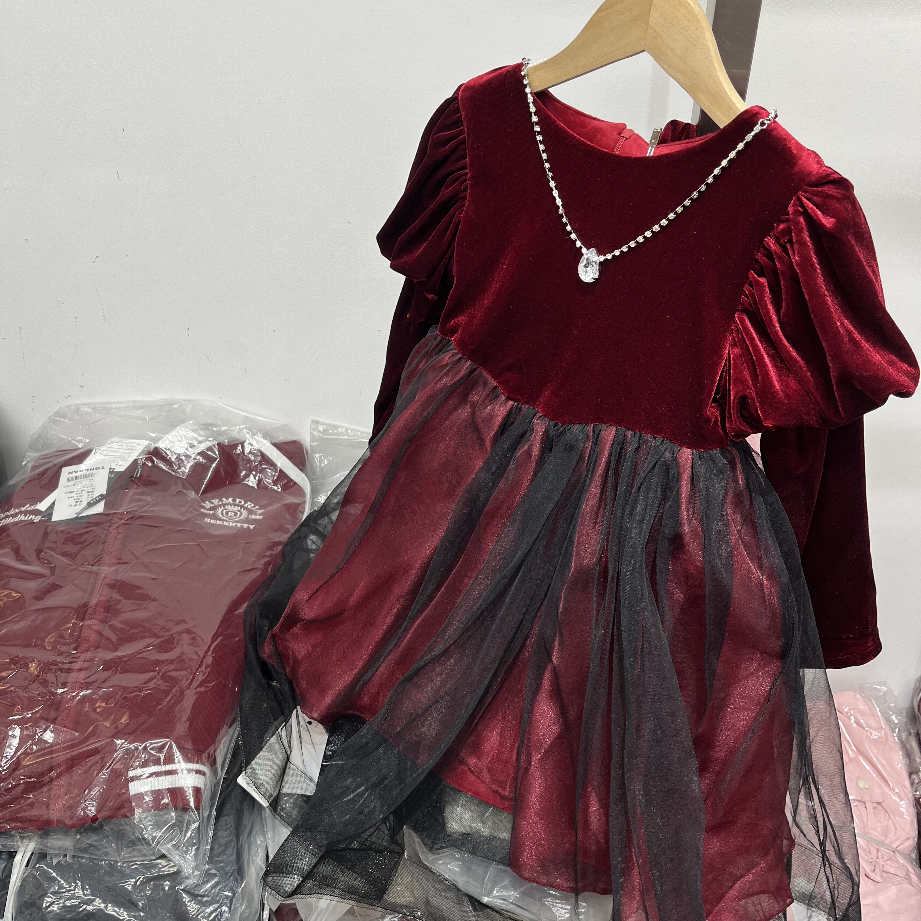 实体店品质女孩中大童装冬季款加绒丝绒年款公主裙长袖连衣裙礼服