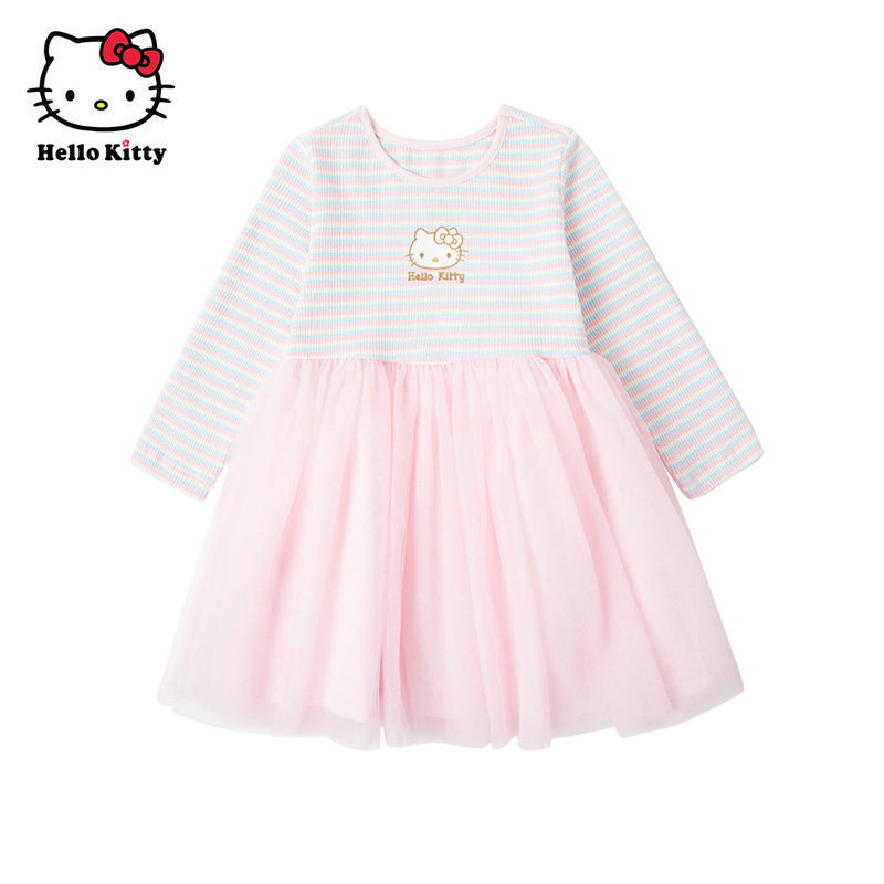 Hello Kitty童装女童春款网纱公主裙长袖连衣裙子洋装