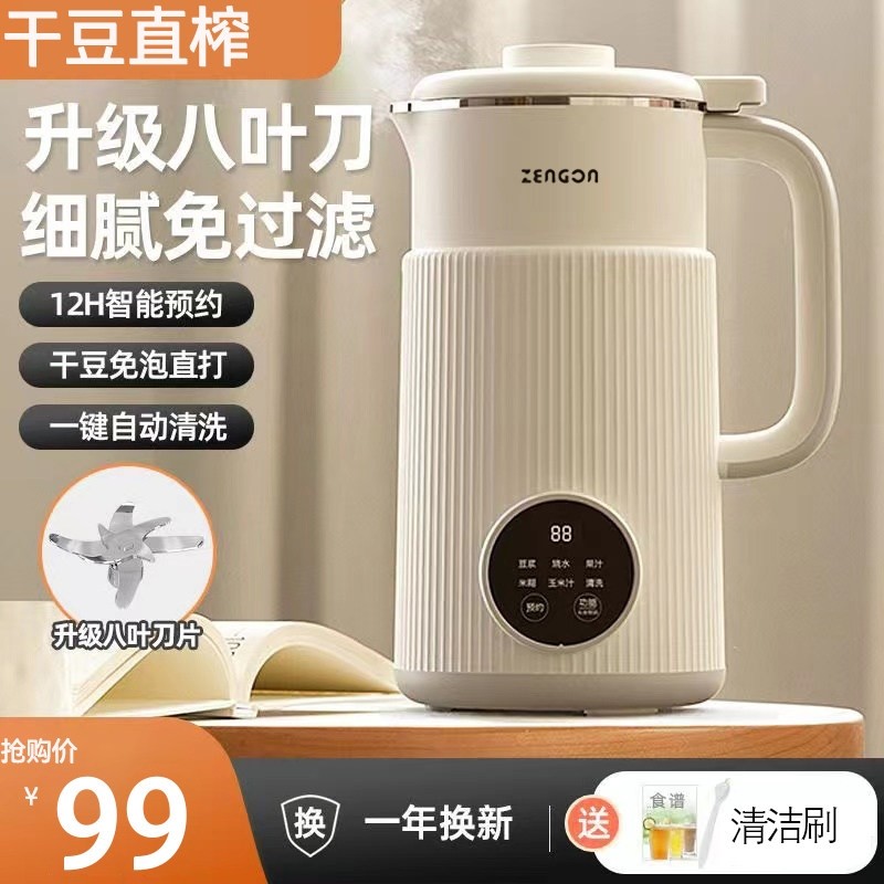 Zemkon破壁机全自动小型家用多功能辅食料理机免过滤豆浆机