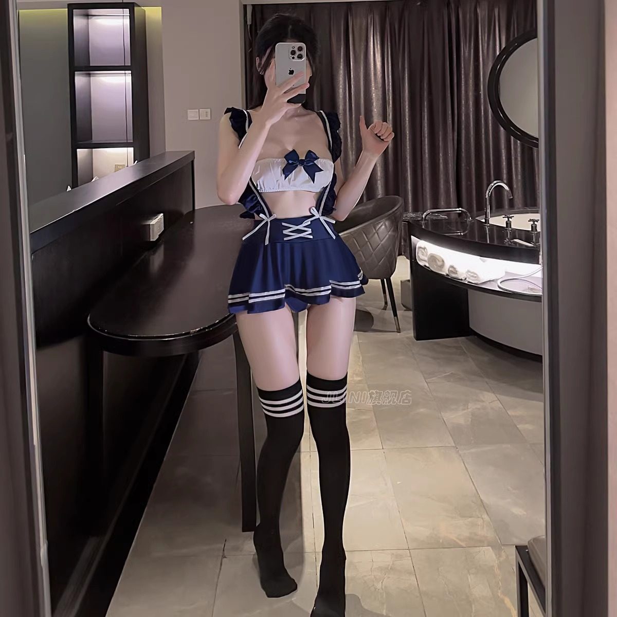 新款日系可爱JK制服学生水手服cos套装女蓝色百褶超短裙性感内衣