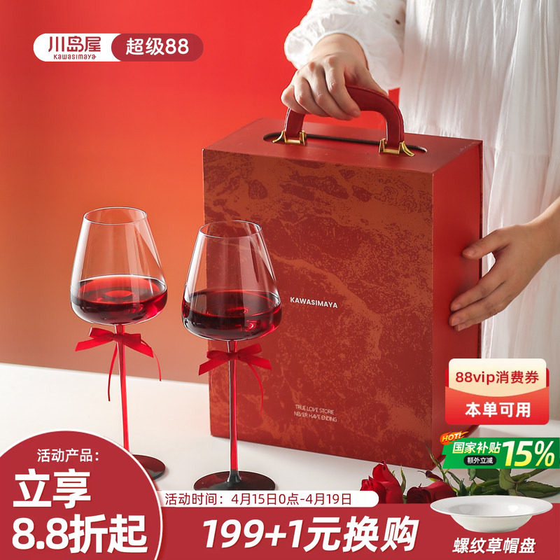 川岛屋红酒杯2个一对礼盒装高脚杯敬酒杯订婚结婚新婚礼物送新人