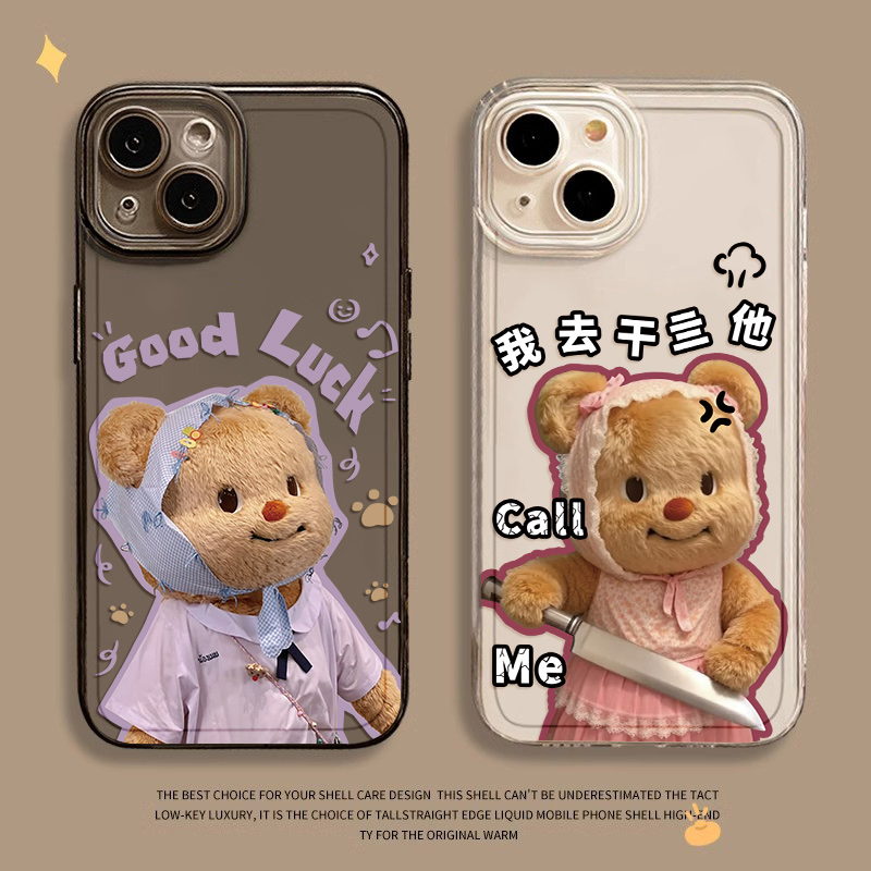 可爱轻松熊手机壳适用苹果11/12/13/14/15promax透明6/7/8plus直边4/5s恶搞可爱xs max防摔保护xr套15潮X情侣