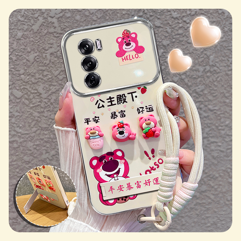 适用opporeno12草莓熊手机壳新款立体DIY公仔reno11全包防摔reno10ins风潮牌reno12pro挂绳高级女款外壳