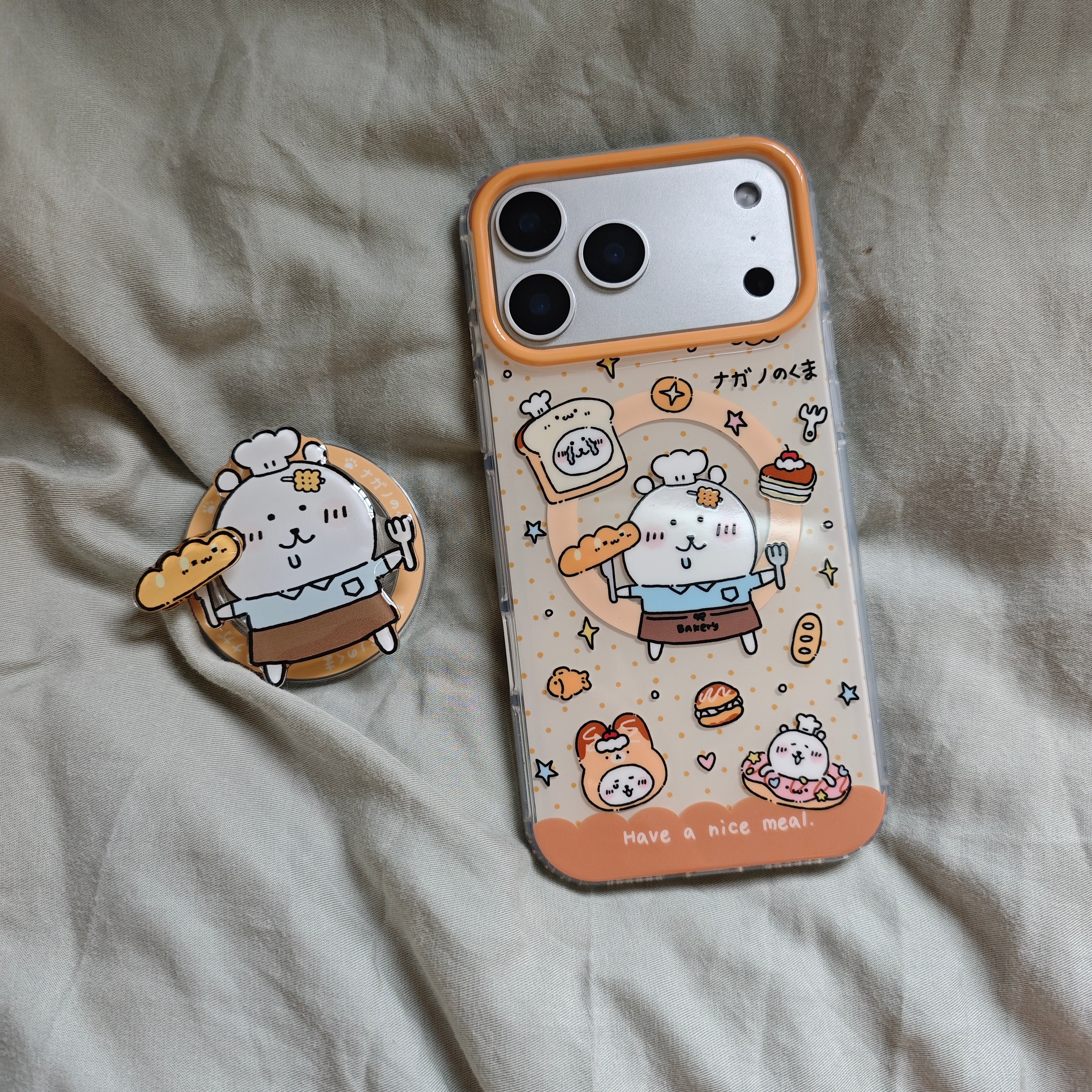 IMD磁吸可爱卡通波点吐司自嘲熊手机壳适用iPhone17promax苹果16大孔防摔15亮面14带支架趣味创意橙色13女生